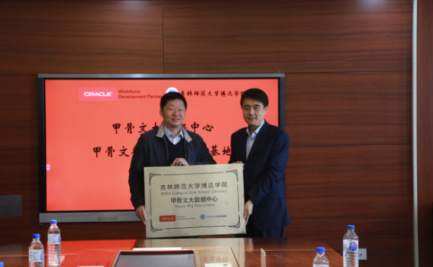 11月20日,学校与甲骨文华育兴业科技有限公司“甲骨文大数据中心和甲骨文行业人才培养基地”挂牌仪式在博达学院综合楼六楼会议室举行。仪式由数学学院院长陶袁主持。