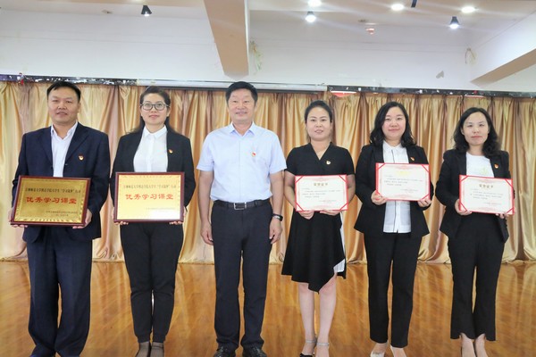 常务副院长王国军宣读了表彰决定。学校对学习筑梦”行动优秀学习课堂、优秀学习园地、优秀学习小组、优秀学习导师标兵、优秀学习标兵;特色党日活动;优秀网络信息员进行表彰。学校领导为受表彰的先进集体及优秀个人代表颁发了奖牌及证书。
