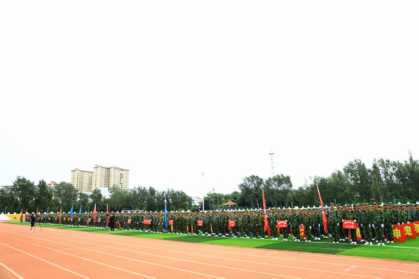 伴随着雄壮激昂的分列式进行曲,由2400多名新生组成的军训受阅方队迈着整齐的步伐,喊着响亮的口号走过主席台接受检阅,充分展现了军训的优秀成果和博达学子昂扬向上的精神风貌。
