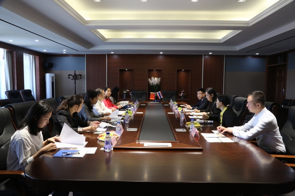 张力宏副院长对郑芸一行的来访表示欢迎,并介绍我校的基本情况及近年来取得的成果,指出在“一带一路”战略下,双方有坚实的合作基础和广泛地合作领域。郑芸对我校的热情接待表示感谢,介绍了泰国格乐大学办学的基本情况和特色项目,期待与我校开展合作,实现共赢,双方就国际合作项目就行了深入的沟通和交流。随后,郑芸一行参观我校新校区。